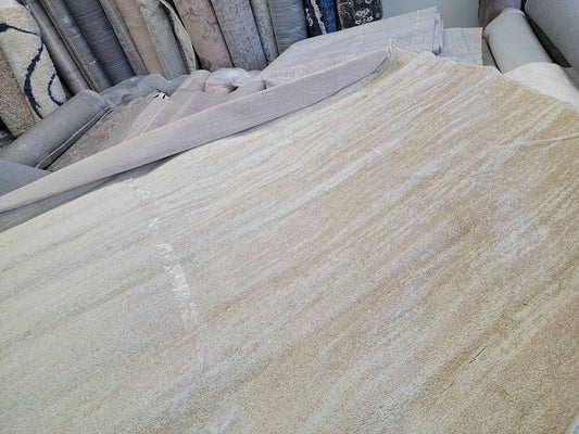 Transitional Beige and Ivory Area Rug | 8' x 8' Round Carpet