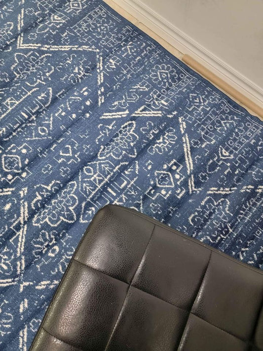 Blue Ivory Geometric Area Rug 8x10 Low pile Area rug