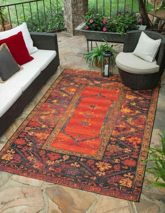 Red Orange Blue Multi Indoor Outdoor Area Rug | 8' x 10'