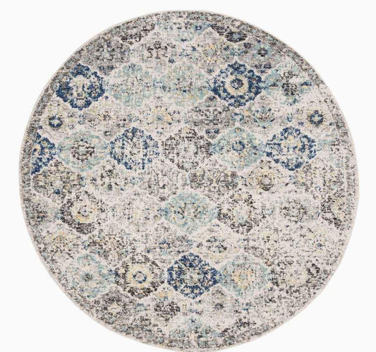 8x8 Grey Blue Ivory Round Area Rug