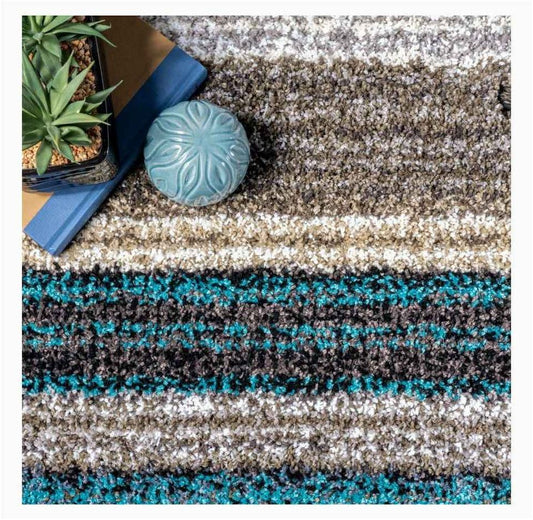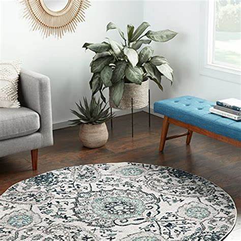 Aqua Blue Ivory Round Area Rug 7x7 ft Rug