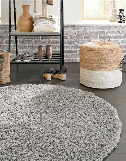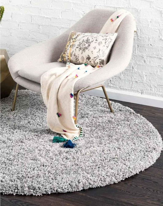 Grey Round Shag Area Rug 7.6x7.6 ft Carpet