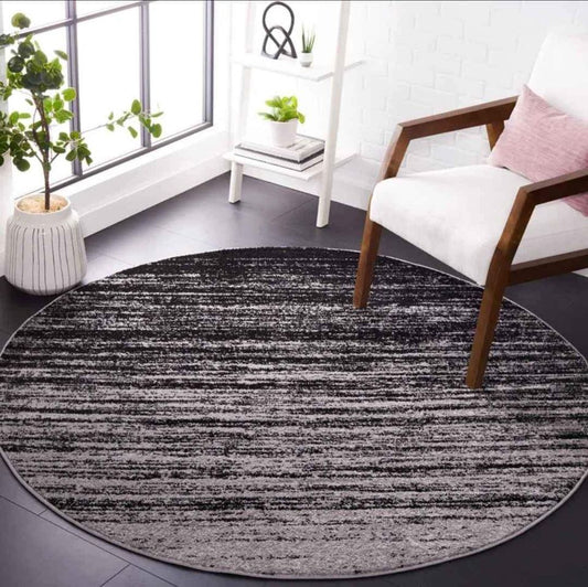Black Grey Abstract Round Area | 7.6' x 7.6'