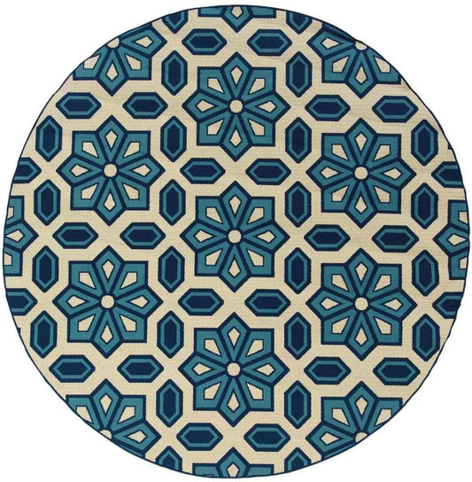 Mediterranean blue and bright Ivory Outdoor Round Rug 8ft R