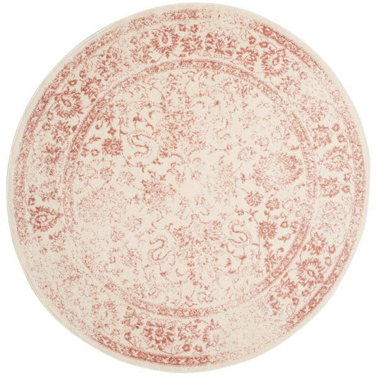 Chic Distressed Rug Ivory Pink Round Area Rug 6.7x6.7 ft