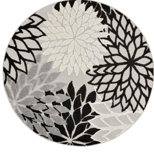 Black White Floral Indoor/Outdoor Area Rug | 5' Round