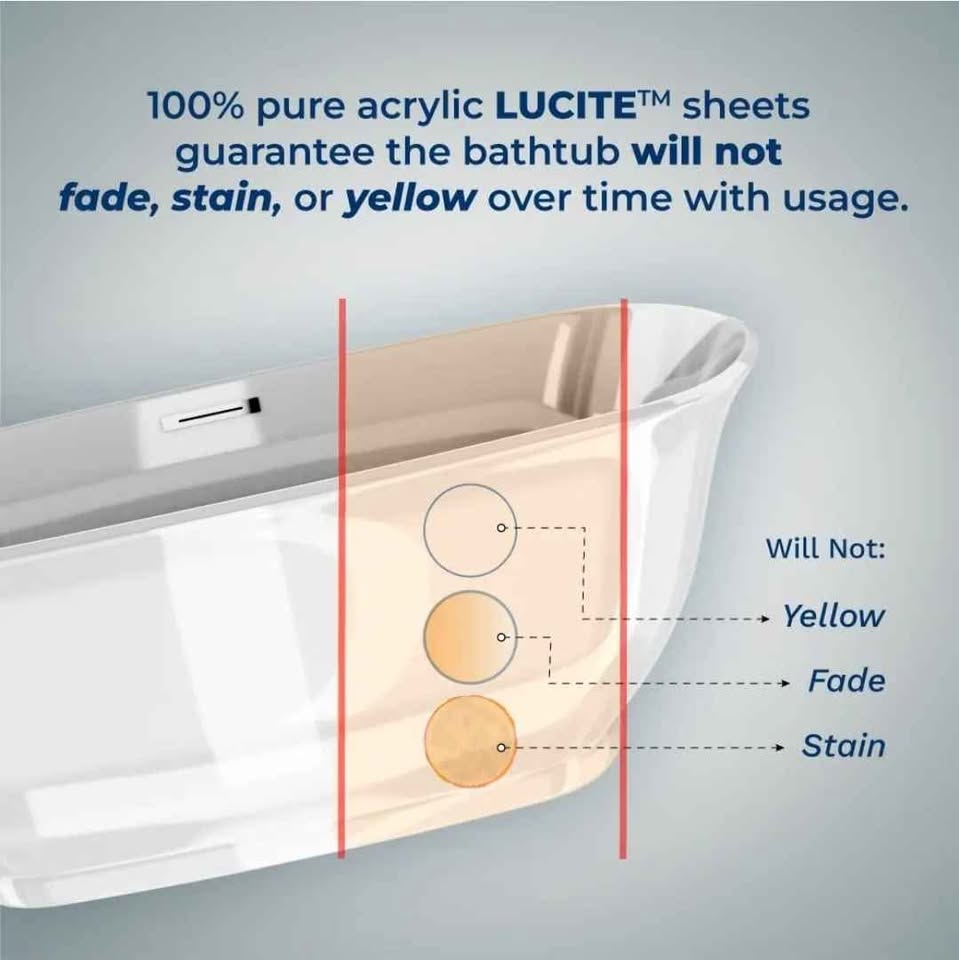 100% pure LUCITE acrylic sheets are used in the manufacturing of this acrylic bathtub.
