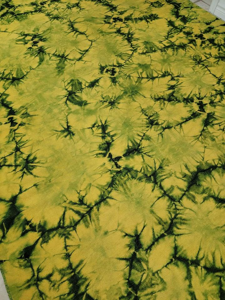 - Brand New 8x10 Green Yellow Tie & Dye Boho Flatweave Wool Area Rug