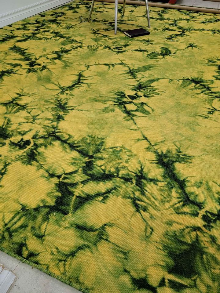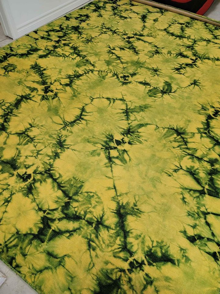 Discover our brand new 8x10 Green Yellow Tie and dye Boho Flatweave Wool Area Rug, an exhilarating addition to your space. This rug, with an actual size of 8x11, is meticulously handmade in India from 100% Wool.